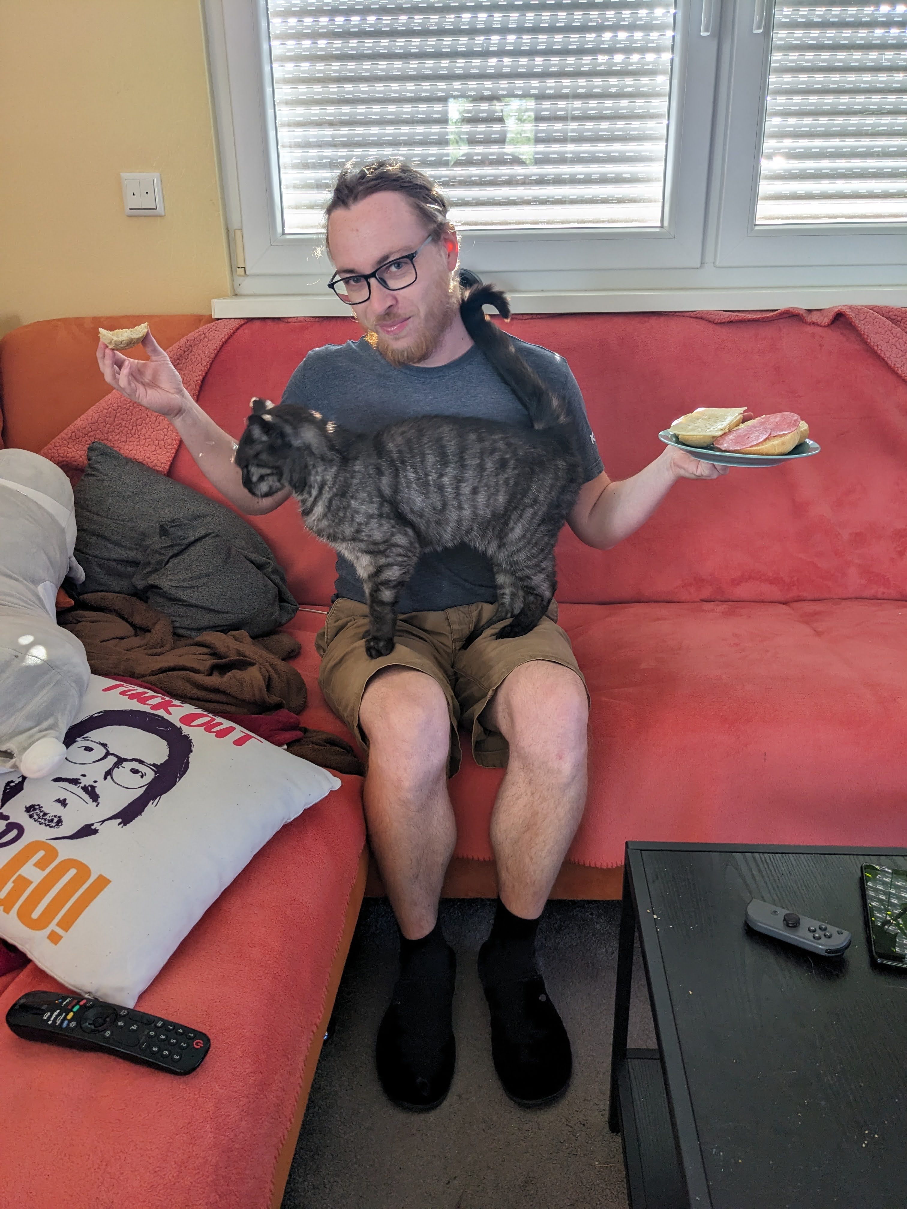 Zwar kein Paparazzi, aber mit seiner Kuschel-Addiction hindert Timmy Jojo auch am Essen