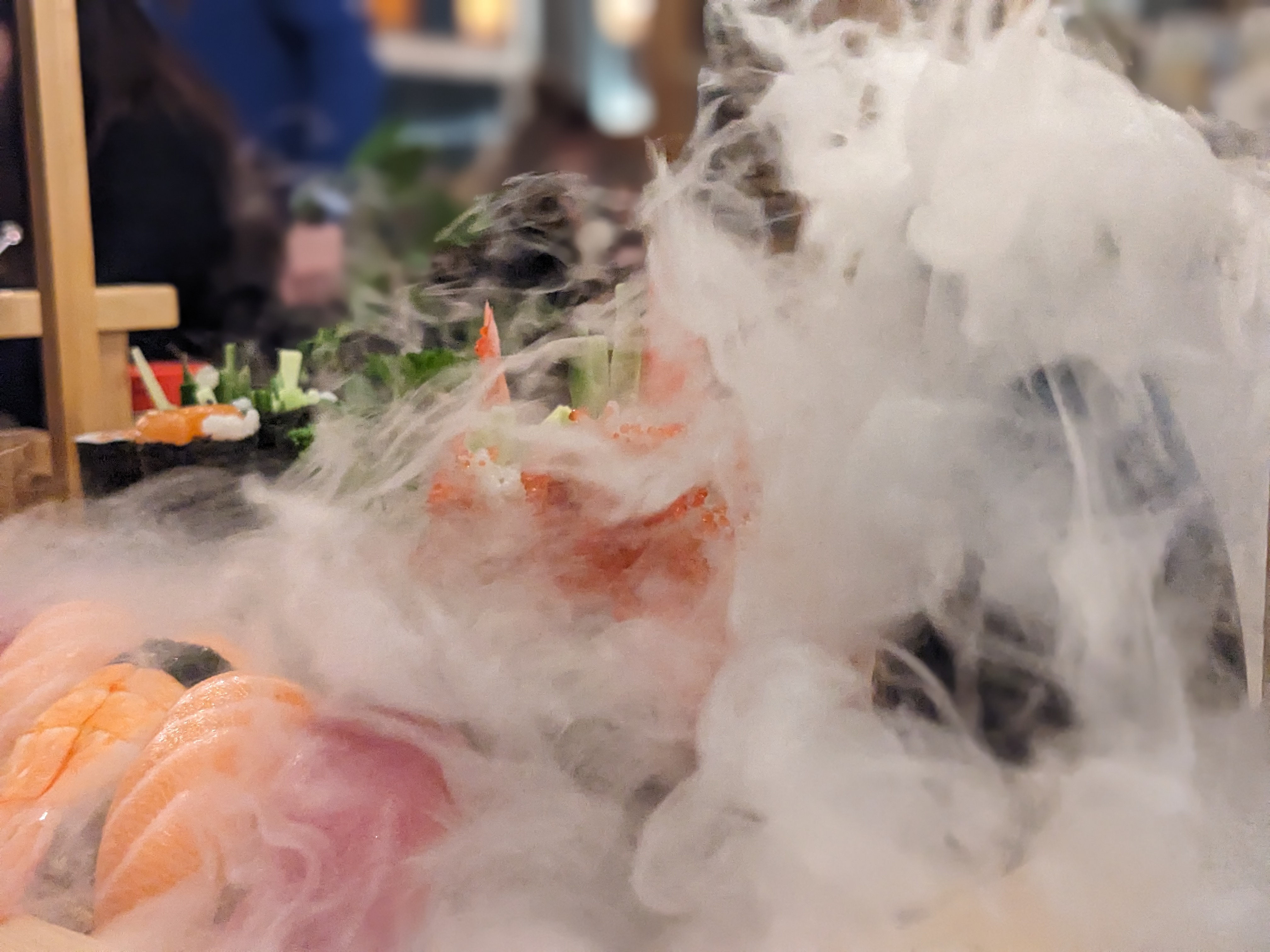 Bei so viel Kunstnebel fragt man sich, ob das Sushi dann später auch danach schmeckt