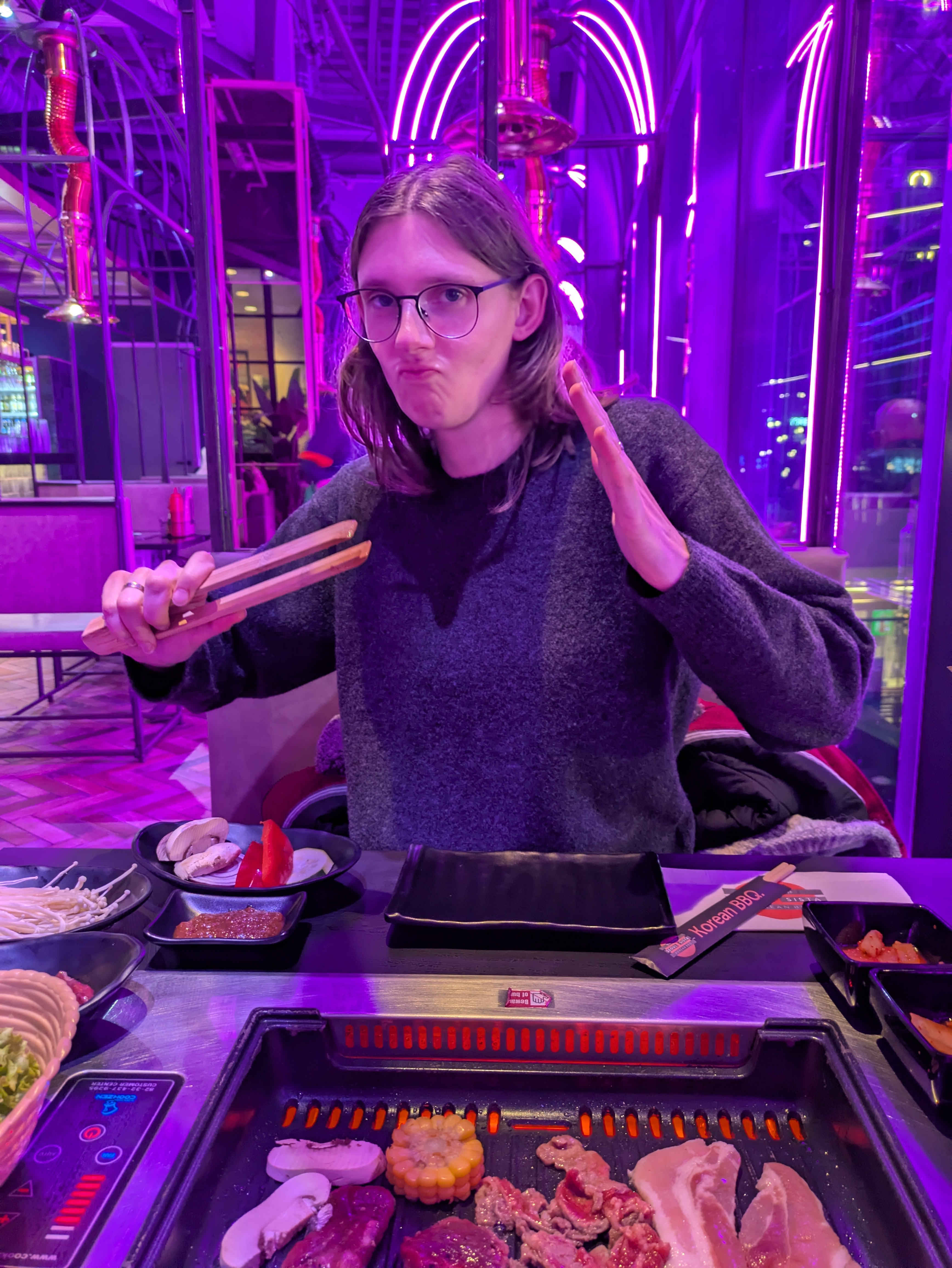 Annika zeigt uns, dass sie nicht umsonst den schwarzen Gürtel im Korean BBQ Kong-Fu besitzt